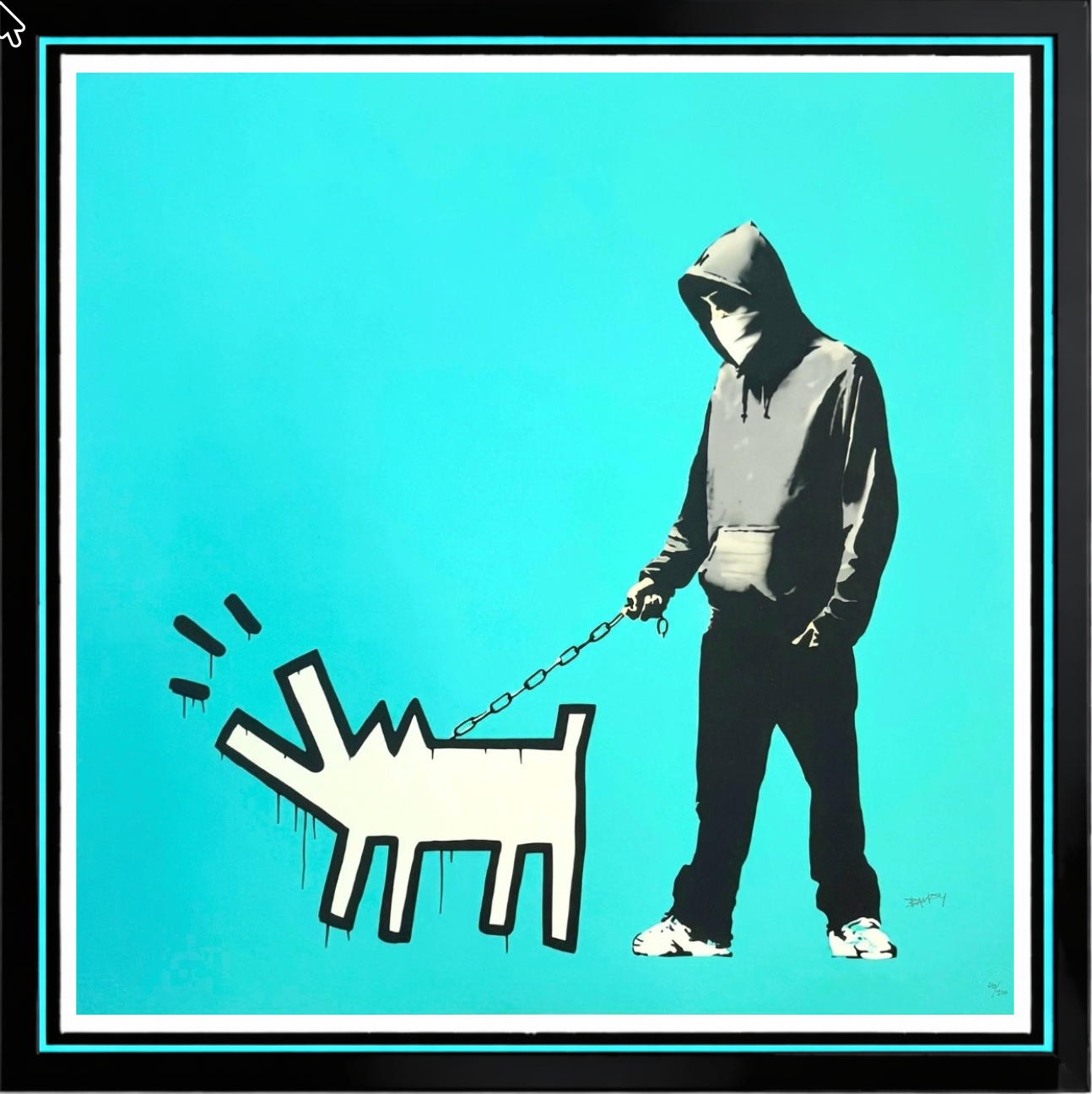 Banksy "barking dog"- aqua screenprint signed- full sized- urban street graffiti | iconic street art