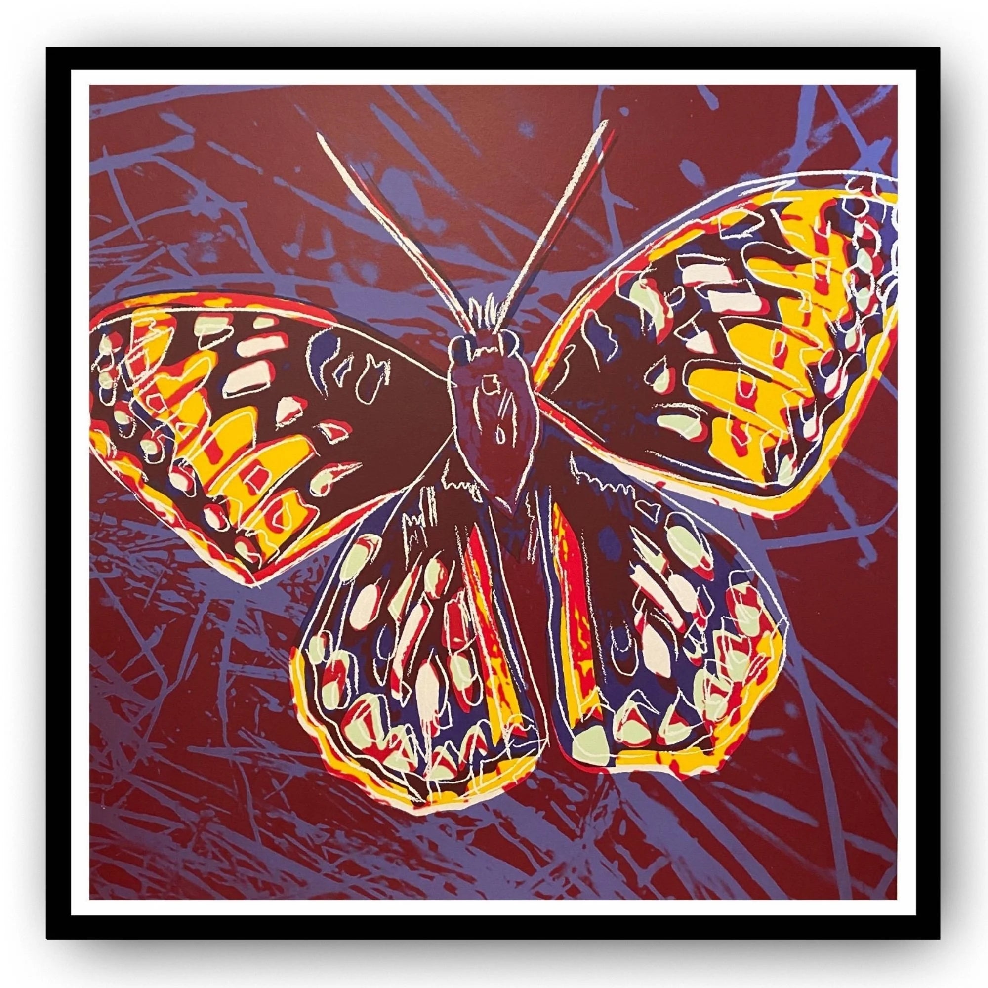 Andy warhol “silverspot"(butterfly)silkscreen proof– endangered species- museum quality 38 x 38" purple & yellow | pop art