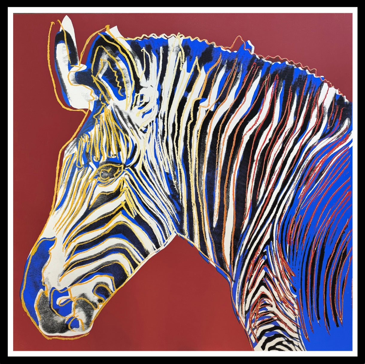 Y warhol “zebra"-maroon trial silkscreen – endangered species proof- museum quality 38 x 38" pop art