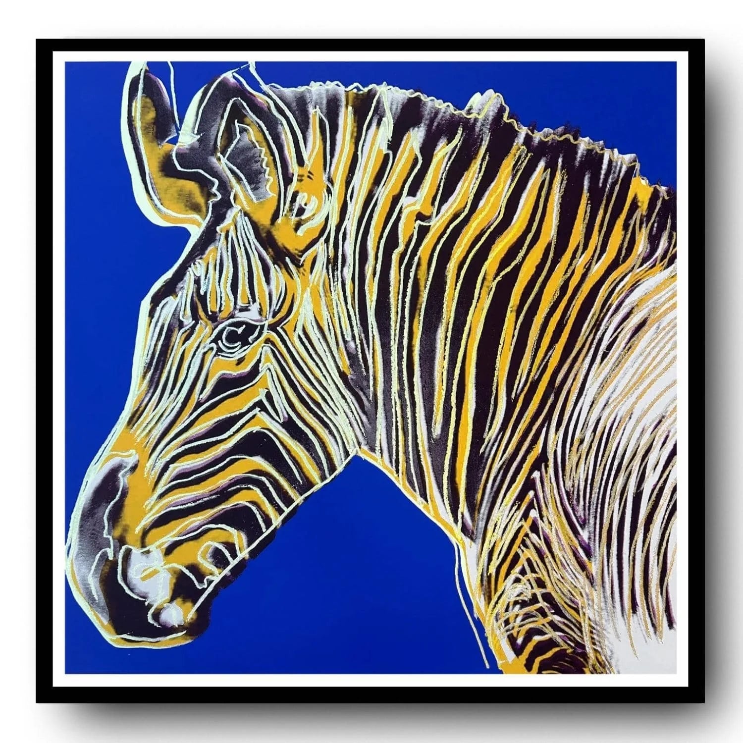 Andy warhol–“zebra" blue-yellow trial-endangered species screenprint- diamond dust- museum quality-38 x 38" wall art