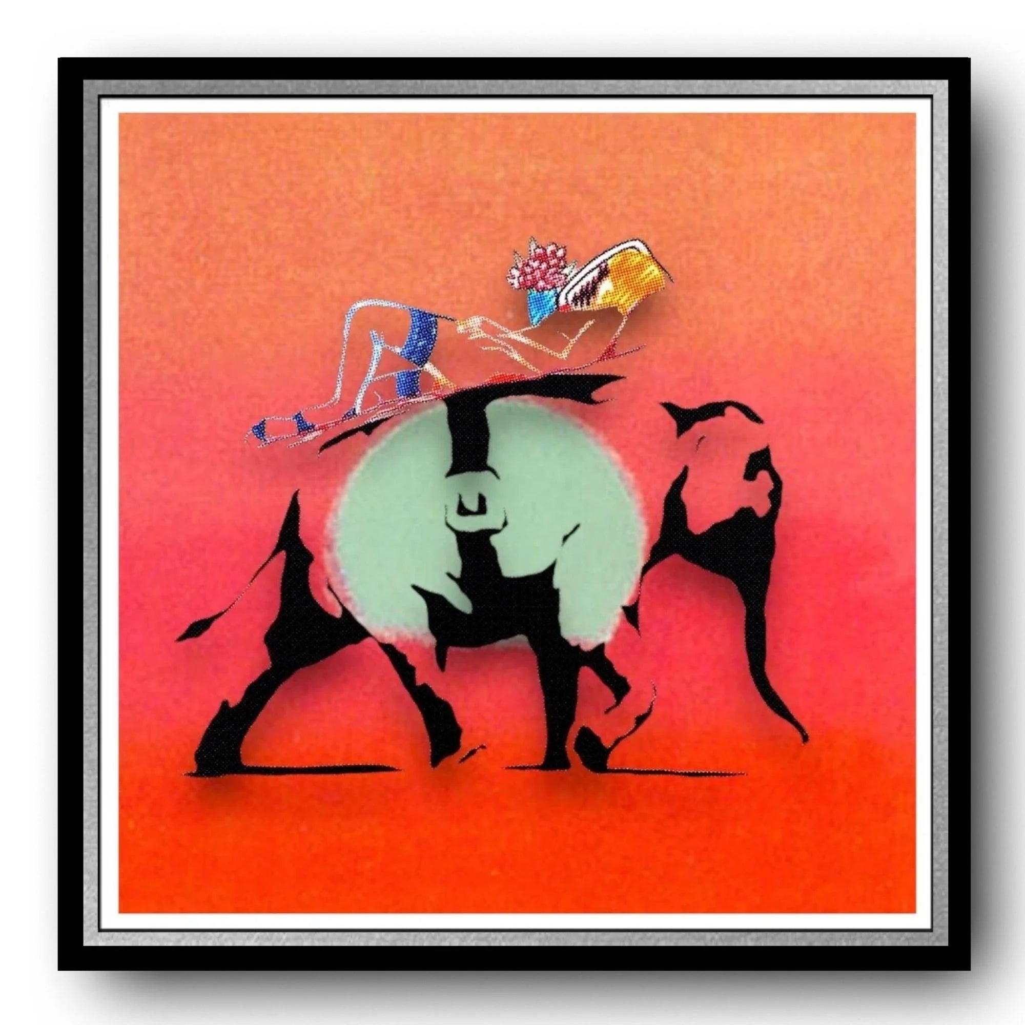 Fenzolini "elephant ride" red - screenprint- hand signed, numbered - warhol, banksy - 31 1/2 x 31 1/2"