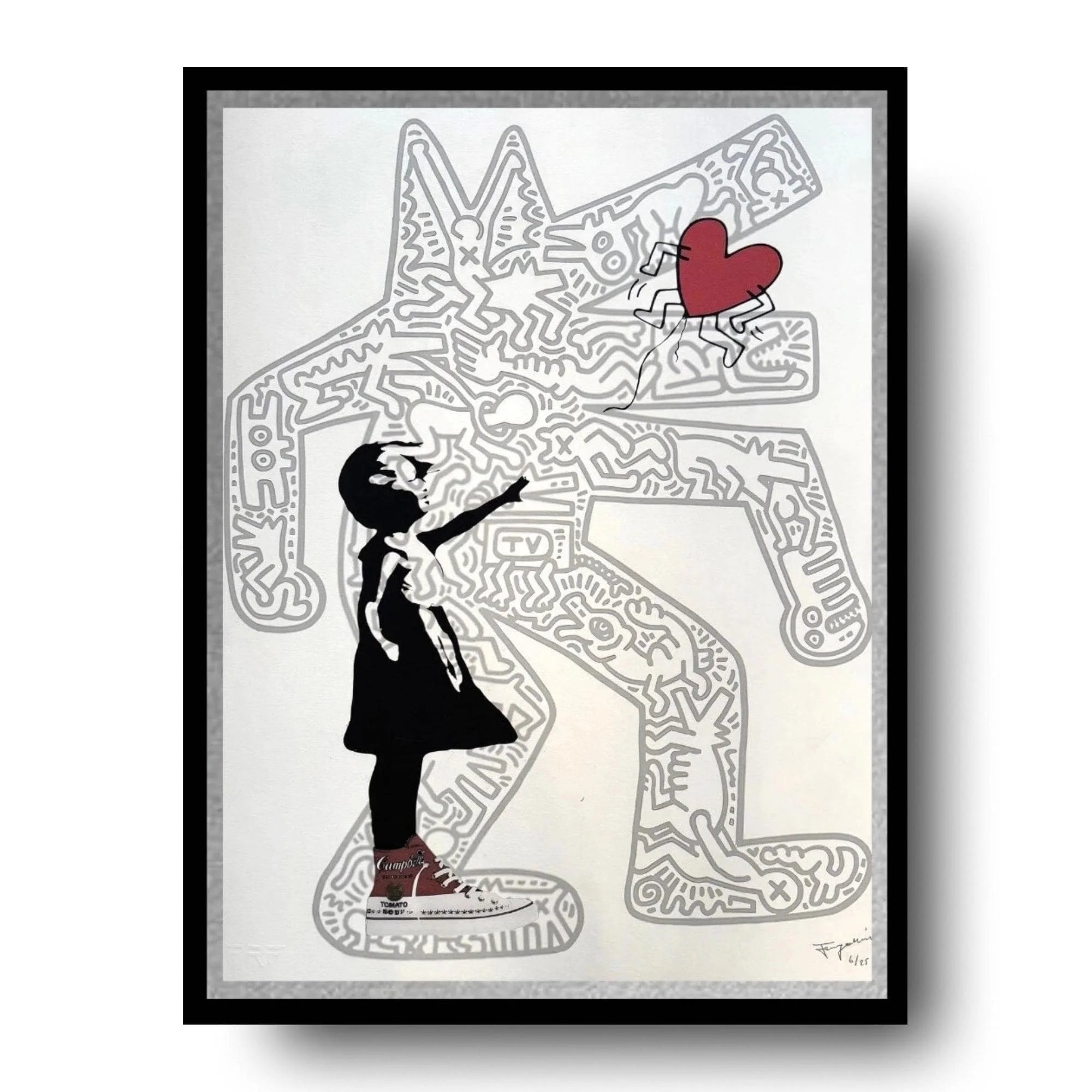Fenzolini - "unleashed love"-screenprint (black & grey)- hand signed, numbered - 22 x 29 1/2" wall art