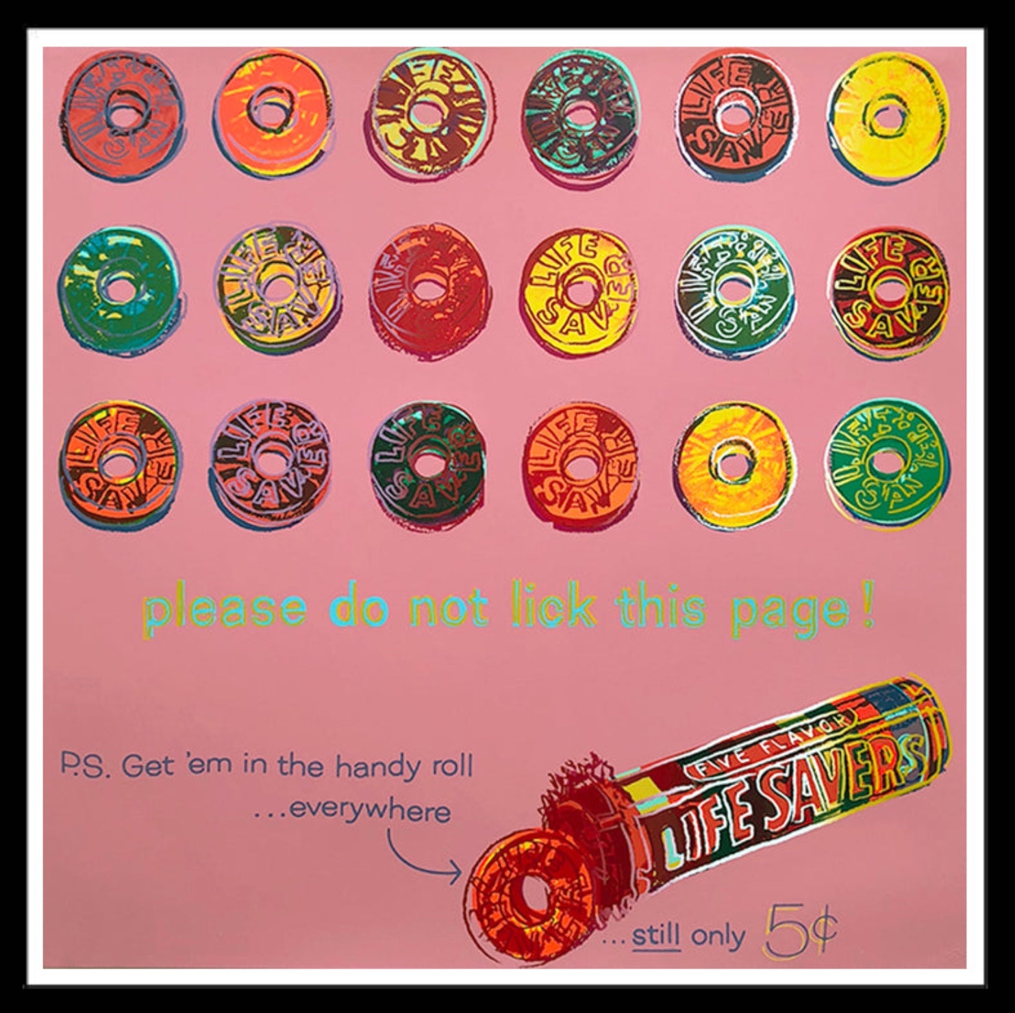 All 10 Images from the Ads Series, 1985. All Silkscreens– Proof Edition, shipped flat on wooden board. Package includes Chanel, Apple, Mobilgas, Donald Duck, Paramount, James Dean, Blackglamma, Volkswagen,Van Heusen (Ronald Reagan), and Lifesavers.