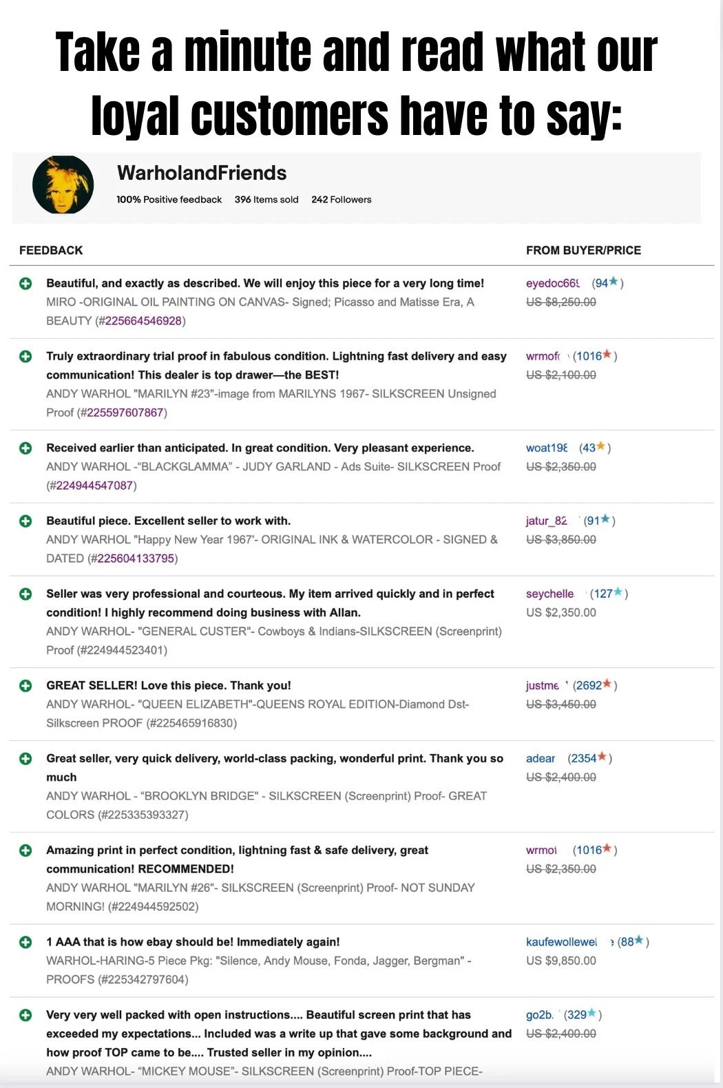 I really have no words to describe how great it was working with WarholandFriends. They were patient with me, helpful, and everything arrived beautifully packaged. I absolutely will be returning for more.