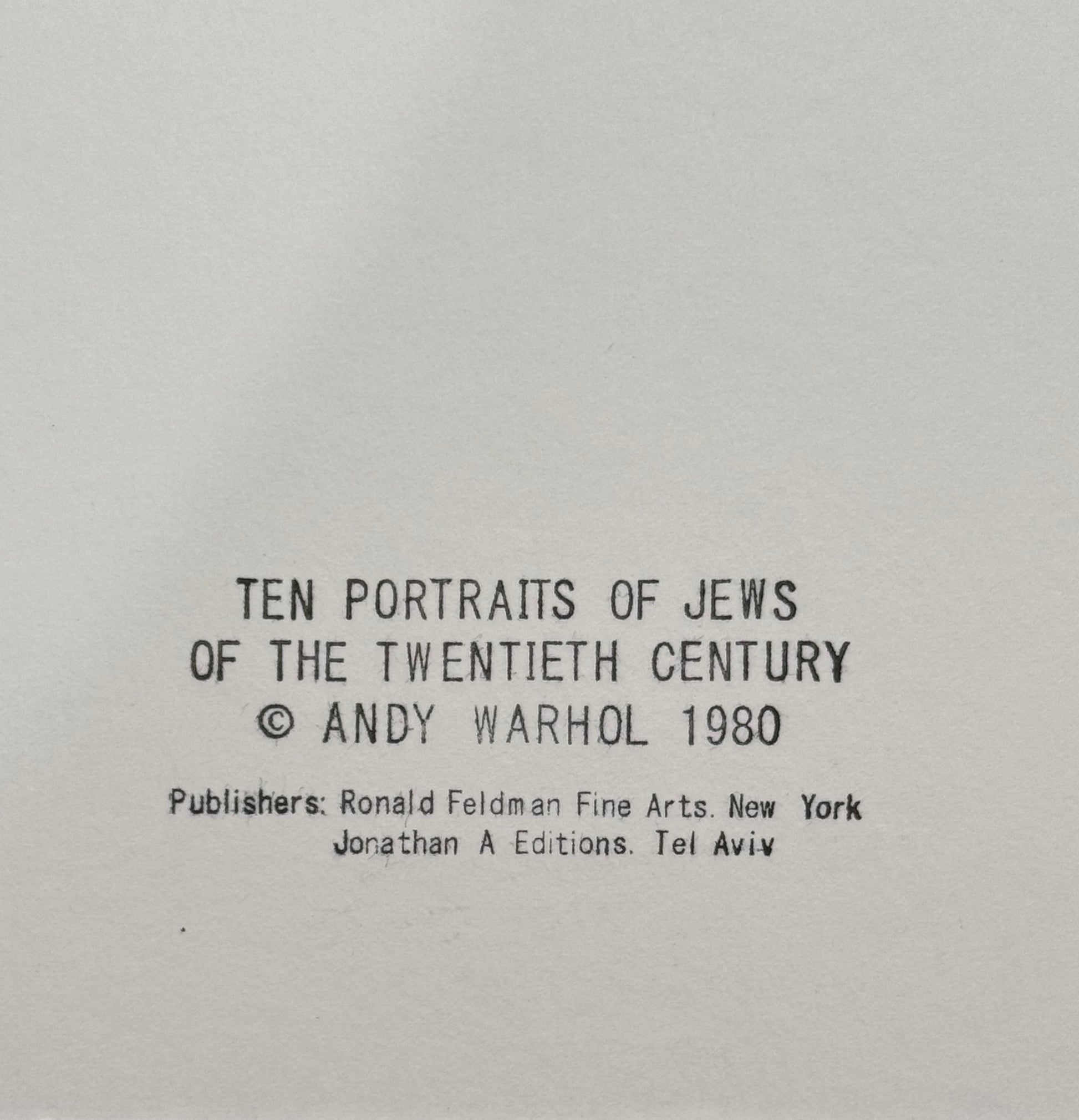 Image from the Ten Portraits of Jews of the Twentieth Century Series, 1980. Silkscreen – Proof Edition, shipped flat on a reinforced wooden board— never rolled. Full sized multicolor beauty.