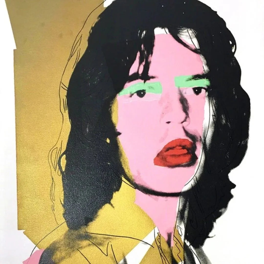 A collaboration between Warhol and the Rolling Stones frontman, this dynamic portrait series combines expressive hand-drawn lines with bold silkscreen color.