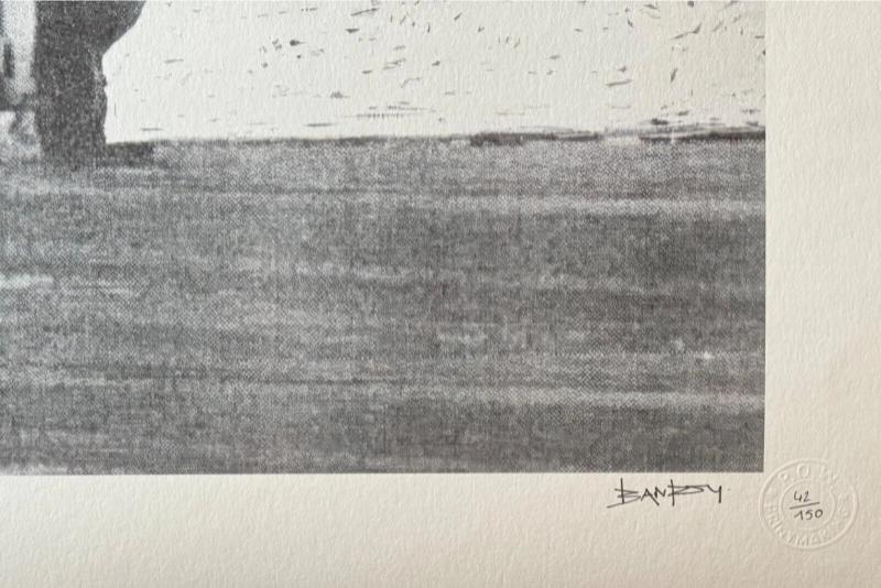 This piece is not authenticated. I am selling as "after BANKSY" and have priced it accordingly. Signed Banksy lower right corner. Do you love Banksy, but are not ready to spend 100K? Add this to your home with a simple frame and you will cherish it for years. Edges of the paper are rough on all four sides. I will include a short Provenance document on my stationery.