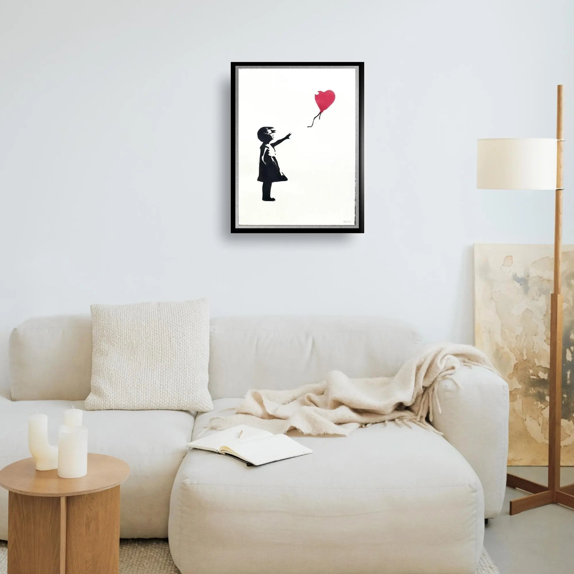 BANKSY "Girl With Balloon"- Original Acrylic Spray Painting- Black and Red- Heavy Arches Paper- Iconic Grafitti Street Art