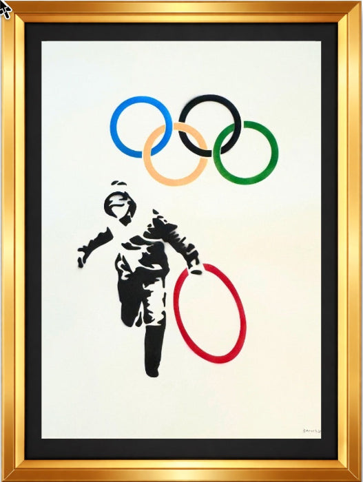 Banksy-"olympic rings looter"- original spray painting- hand done-urban art graffiti- signed-full sized | iconic street art